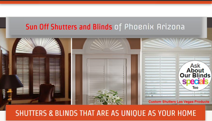 Sun Off Shutters And Blinds of Phoenix is the only company to ever get the Diamond Award Winning service for window blinds and window shutters. As a window shutters Phoenix company and a window blinds Phoenix company we are here to deliver only the best. It's a fact that every customer that has ever used Sun Off Shutters And Blinds has only meet the sales and installation courtesy team to their liking. We take great pride the our company has received more Awards for our service than any other company in the industry. And here is the Kicker, YES we are the we CHEAPEST SHUTTERS AND BLINDS COMPANY in Phoenix Arizona. We have more product more knowledge and more experience as we bring it from all different states in the U.S.A.